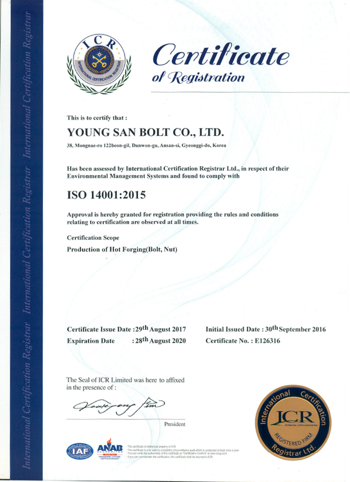 YOUNGSAN BOLT CO.,LTD. | CEO : Park Jae cheol | Business number : 134-87-05371