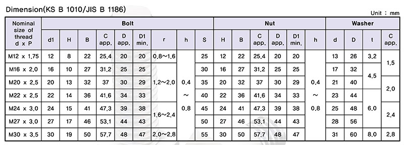 Set | Demension(KS B 1010/JIS B 1186)