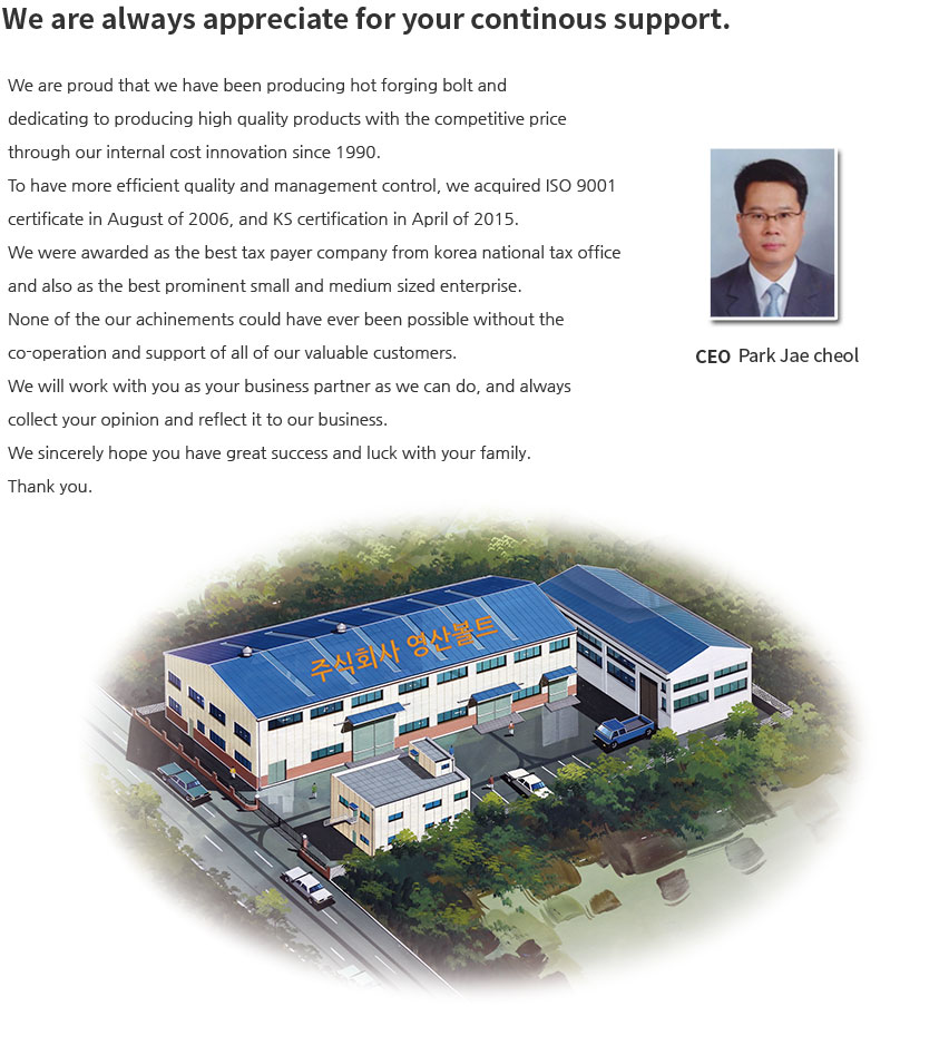YOUNGSAN BOLT CO.,LTD. | CEO : Park Jae cheol | Business number : 134-87-05371